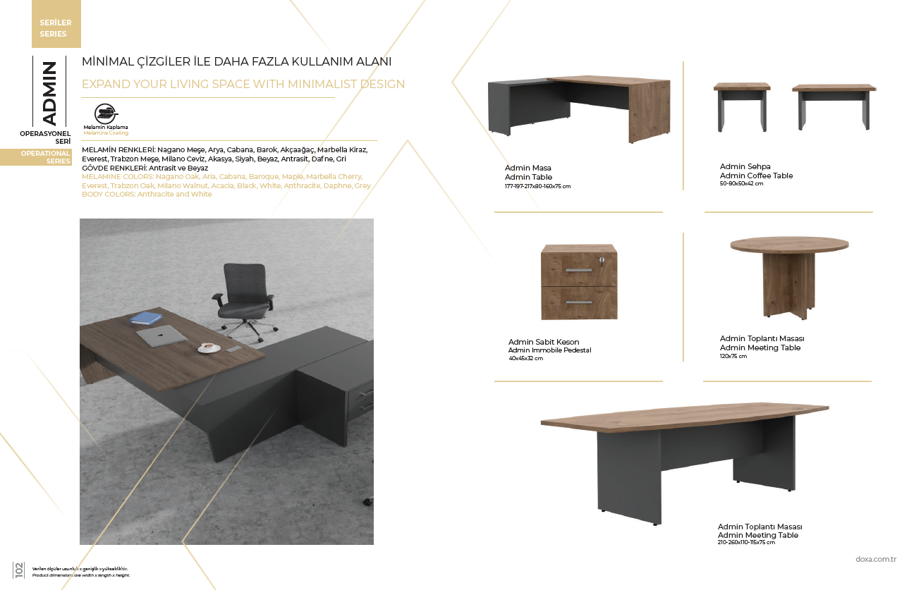 MELAMİN RENKLERİ: Nagano Meşe, Arya, Cabana, Barok, Akçaağaç, Marbella Kiraz,