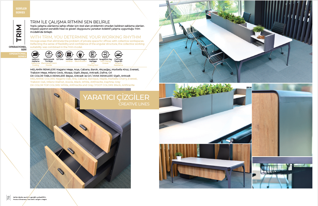 MELAMİN RENKLERİ: Nagano Meşe, Arya, Cabana, Barok, Akçaağaç, Marbella Kiraz, Everest,